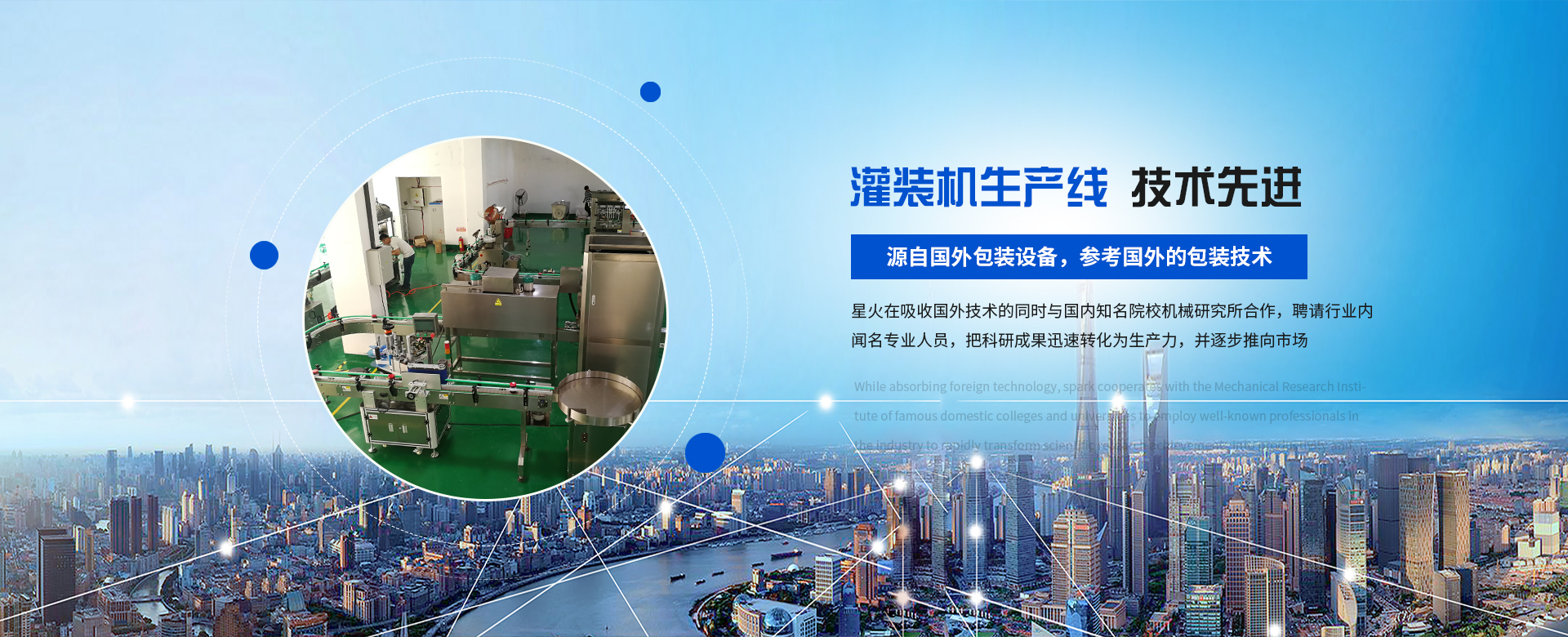 鄭州星火包裝機械有限公司是一家集科研、生產、銷售、服務于一體的高新科技企業,公司現有員工100多人,是一家從事食品、制藥、化工灌裝機、灌裝生產線、無人化智能包裝生成線的專業制造廠家。星火人秉承“誠信、責任、服務、發展”的經營宗旨,以“提高企業包裝效率”為企業使命;以“科技創新”引導企業的經營與發展思路,并以企業文化建設的成效來促進品牌的發展。